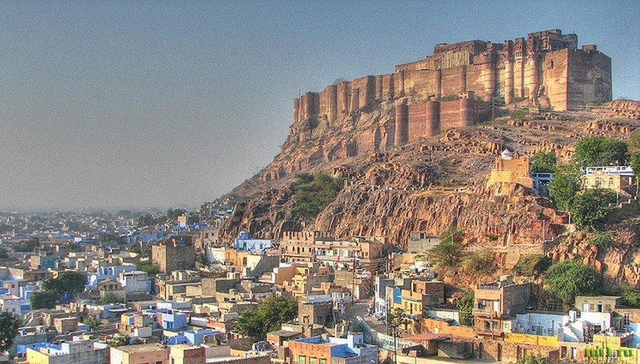 Крепость Джодхпур была построена в XV веке царем Рао Джадходжи. Сегодня, глядя на голубое отражение Джодхпура с террасы крепости, Вы чувствуете что город полон жизни. Многие дома в городе окрашены в голубой цвет. Местные жители по-разному объясняют это — некоторые считают, что голубой цвет отличает дома высшей касты Брахманов, другие утверждают, что это просто защита от москитов, которые, как оказывается, не любят этого цвета.