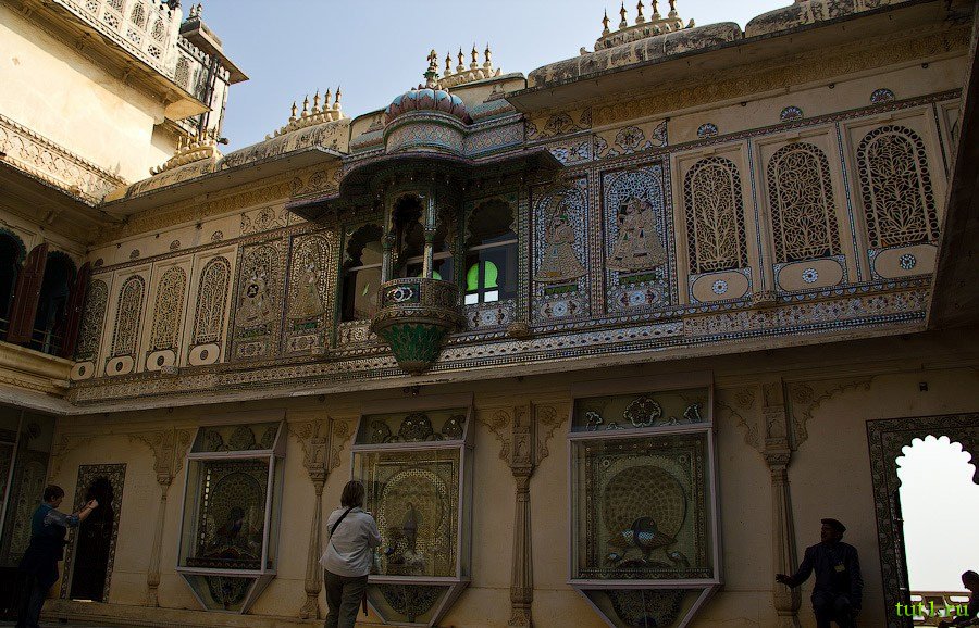 В Удайпуре, самом романтичном городе Раждастана, находится Городской Дворец. Этот замок является самым большим дворцом Раджастана. Построен он из мрамора и гранита на вершине холма, господствующего над озером Пичола. Отреставрированный и превращенный в музей-дворец — это огромный лабиринт комнат, лестниц, дворцов и террас. Среди самых замечательных его сокровищ Морчоук — двор павлинов, украшенный мозаикой и зеркалами.