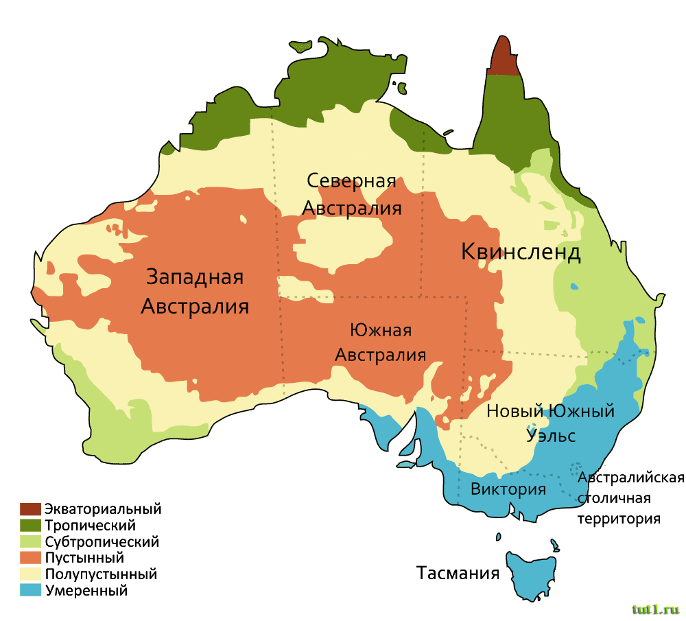 Климат Австралии не постоянен и зависит в основном от течений в океанах. На сервере страны преобладает тропический климат. В летний период температура зашкаливает за 30C, зимой 22C-25C. Температура воды круглый год не опускается ниже 25С. В южной части Австралии царит умеренный климат. В этой части материка практически не бывает больших осадков. Летом на градуснике обычно держится 30С-32С. В зимний период 10С. Круглый год в Австралии в основном сухо. Летом очень редко идет дождь, а зимой снег выпадает лишь в высокогорных районах страны и в умерено климатической зоне на юге страны. После Антарктиды, Австралия является вторым материком, где выпадает самое меньшее количество осадков.
