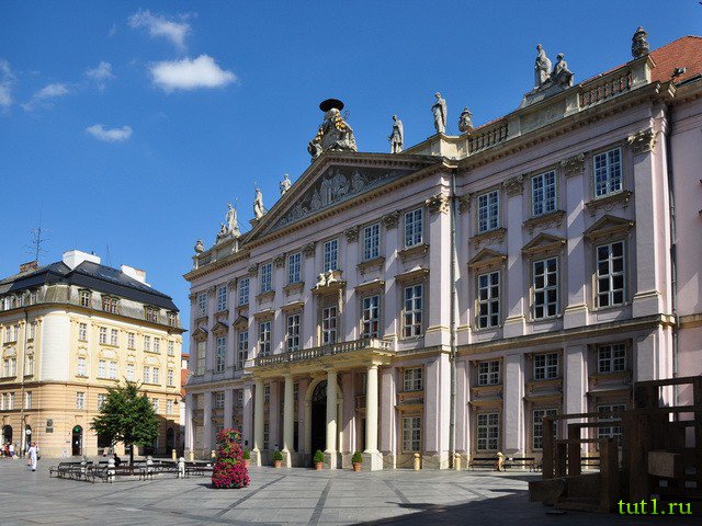 Архиепископский дворец был сооружен в стиле нео-классики, сегодня он находится в старой части Братиславы. Дворец был построен в период с 1778-го по 1781-й год, для архиепископа по проекту архитектора Хефеле. Дворец служил местом, где проводились наиболее значимые события, среди них — подписание Прессбургского мирного соглашения по окончании битвы под Аустерлицем. Во владении города дворец находится с 1903 года, в этом же году была проведена реставрация, тогда в тайниках за стенами нашли несколько уникальных гобеленов с изображением Геро и Леандра, а также историю их трагической любви. Гобелены датированы 1630 годом, их изготовили в королевских ткацких мастерских недалеко от Лондона.
