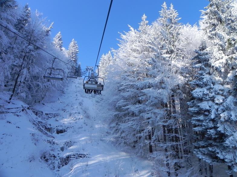 Чуть выше находятся трассы для тех, кто уже слегка поднаторел в этом искусстве — «синие». Находятся они на горе Витранц, и к ним ведут именно те самые тихоходные кресельные подъемники. Они достаточно интересны тем, кто уже в некоторой степени овладел лыжами, мастерам же для их освоения будет достаточно и одного дня.