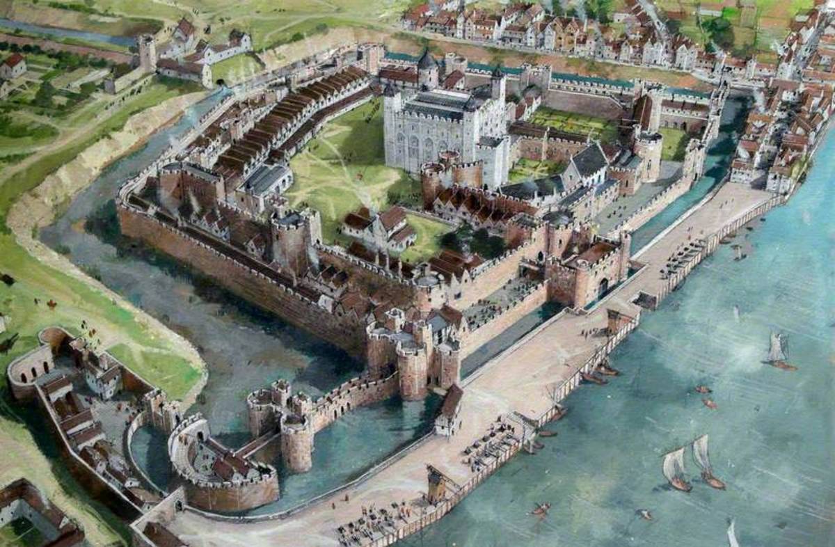 В 1066 году Уильям I Завоеватель, сразу после своей коронации, начал возводить укрепления на этом участке, чтобы доминировать над коренным торговым сообществом, контролировать доступ к Верхнему бассейну Лондона, а так же защищать и провозглашать свою королевскую власть и устрашать побежденных англосаксов. Строительство центральной крепости, известной как Белая башня, было начато в 1078 году вблизи старой римской городской стены. Башню строили из известняка, привезенного из Канн во Франции. В 12-13 веках укрепления были расширены за пределами городской стены, а Белая башня стала центром строительства серии укреплений – достраивались новые башни и были возведены два ряда мощных крепостных стен. Внутренняя стена имеет 13 башен, окружающих Белую башню, из которых самыми известными являются Кровавая башня, Башня Бичем и Башня Уэйкфилда. Наружная стена окружена рвом, первоначально подпитываемым Темзой, но осушенным в 1843 году.