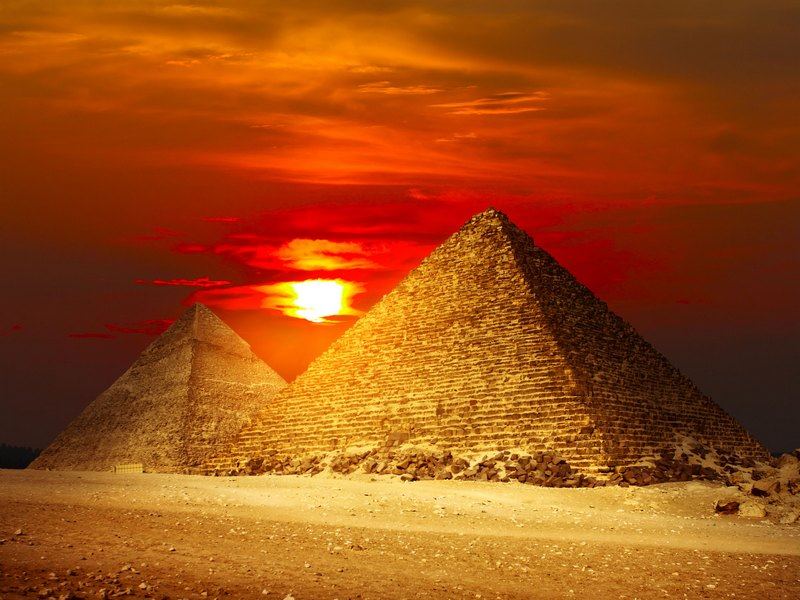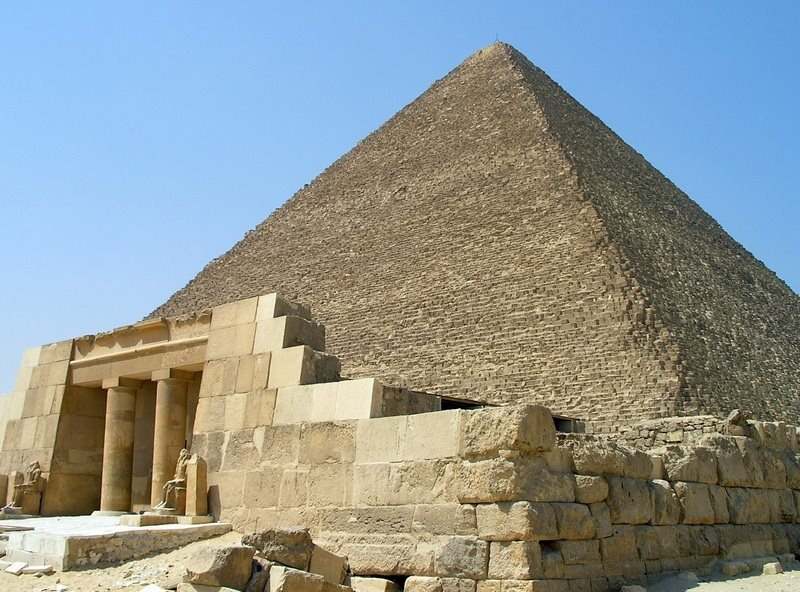 Из некогда существовавших семи чудес света уцелела лишь пирамида Хеопса. Она была построена 4,5 тысячи лет назад как усыпальница фараона Хеопса. Великая пирамида — самая большая из трех пирамид в Гизе. Являясь символом самой великой цивилизации древнего мира, пирамиды безмолвно стоят в западной части египетской пустыни Сахары. Вид плато Гизы и громадного комплекса из трех пирамид всегда заставлял умнейших людей ломать голову над возможной технологией, которая применялась при их строительстве. Размеры и сложность древнего проекта имеют крайне внушительные параметры. У пирамиды Хеопса квадратное основание со сторонами около 230-ти метров, которое занимает площадь в 53 тысячи метров. Высота пирамиды изначально составляла 147 метров, сейчас — около 138-ми метров.