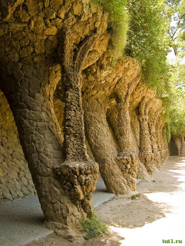 В парке Гуэль отобразилась любовь Гауди к природе, а также волнистым и извилистым формам, которые неординарно вписались в природный ансамбль города-сада.
