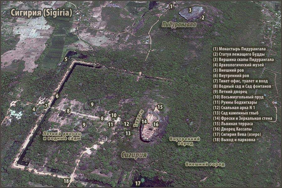 Сигирия — карта достопримечательностей