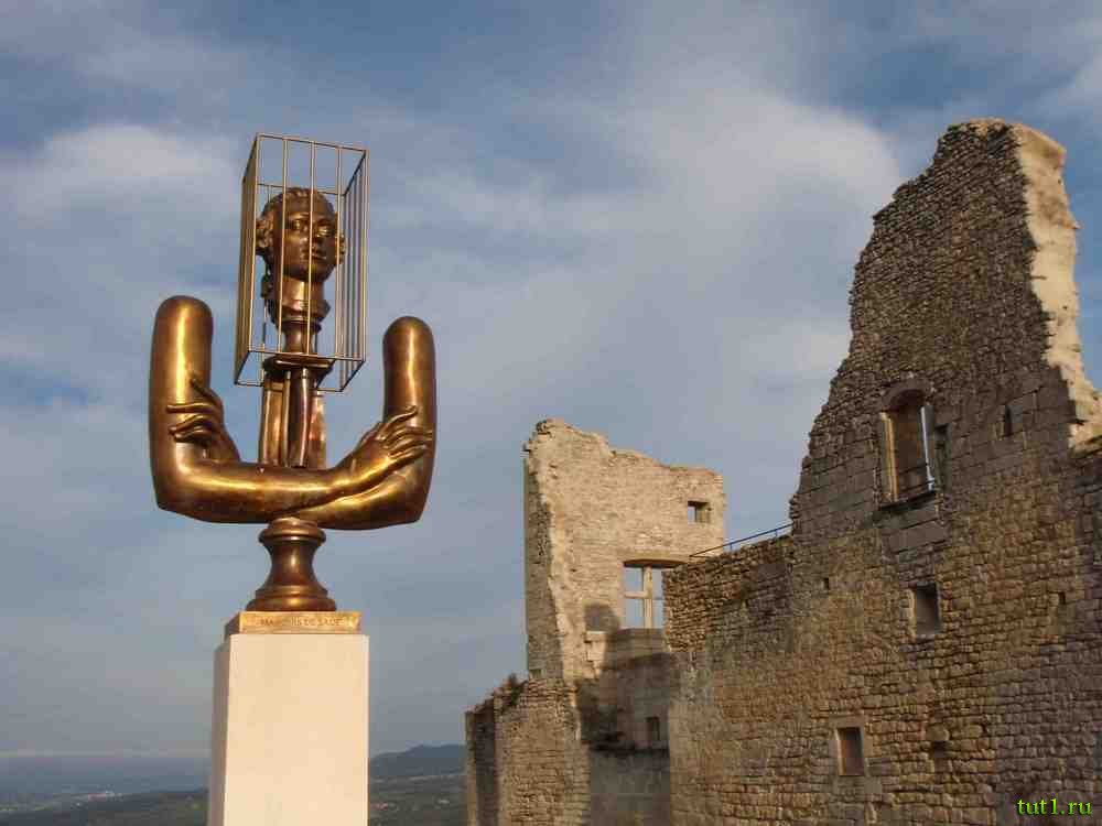 Городок Ле-Кост навеки связан с именем человека, чья натура была поэтична, притягательна и, еще более, отталкивающая. Его имя стало нарицательным, олицетворяющим мерзость человеческой натуры. Именно человеческой. Ведь, чем отличается человек от животного? Одно из отличий в том, что животное убивает другое живое существо при опасности либо в качестве добычи. И только человек лишает жизни другое живое существо ради удовольствия. А наш герой прославился именно этим — он опоэтизировал убийство ради садизма. Перед смертью это чудовище оставило завещание, в котором речь шла о том, что он просил когда его засыплют землей, пусть сверху разбросают желуди, чтобы молодая поросль скрыла место его захоронения и след могилы исчез бы навсегда как и он сам надеялся исчезнуть из памяти людей. Но он был столь ужасен, что оставил по себе недобрую память и понятие названное его именем — садизм. Человеком этим был маркиз де Сад. Очень любопытный памятник ему установлен рядом с его замком.