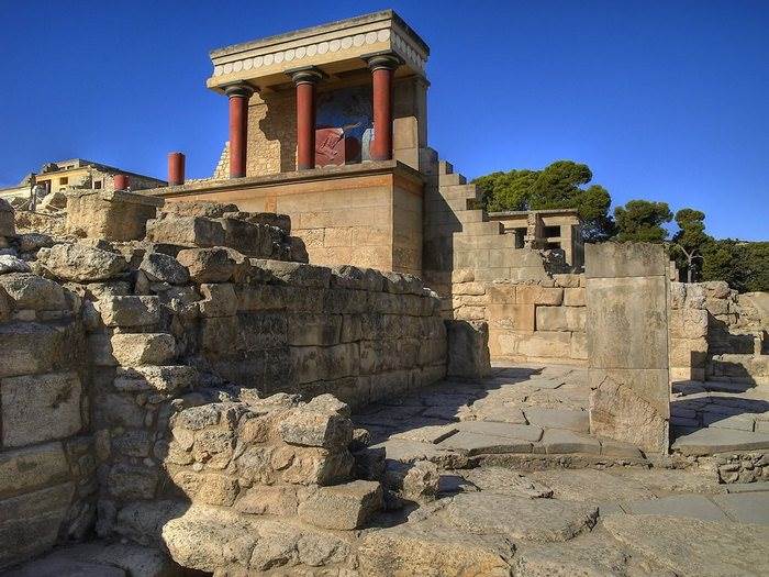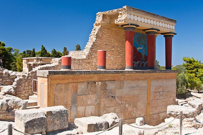 Овеянный легендами, Кносский дворец расположен в нескольких километрах к югу от Ираклиона. В 1878-м году руины Кносского дворца были обнаружены греческим торговцем. После этого британский археолог Артур Эванс приобрел весь этот комплекс. В том же году Эванс пригласил 30 рабочих и были начаты обширные раскопки, которые продолжались 33 года Но он не ограничился только тем, чтобы откопать исторические остатки. По приказу Эванса были реконструированы некоторые части комплекса — так возникли новые колоны и стены, появилась внутренняя обстановка.