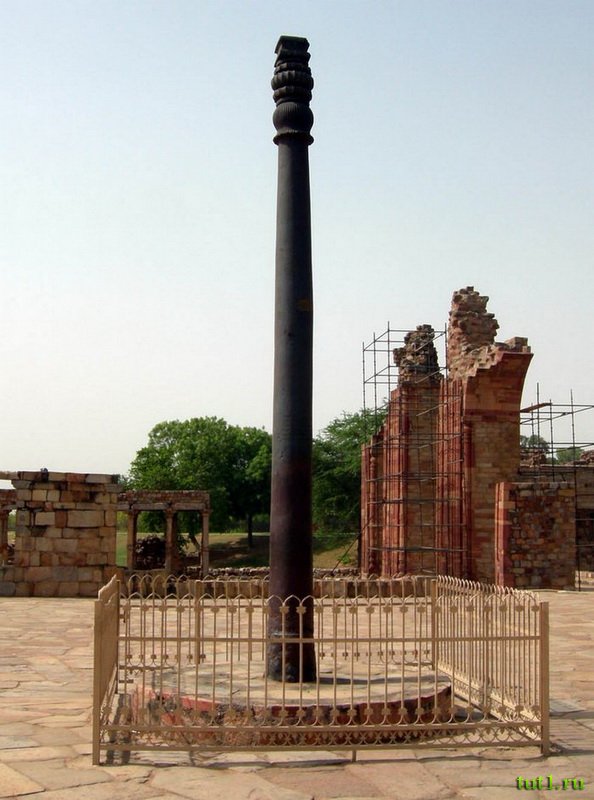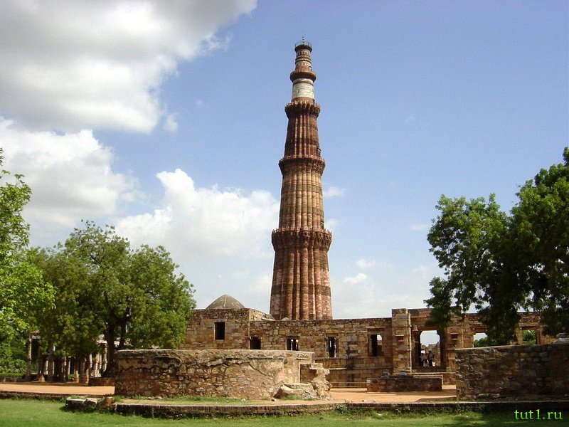 К югу от Нью-Дели, в старой части города, возвышается на 73 метра Кутуб-Минар — самый высокий кирпичный минарет в мире и главная достопримечательность Дели. Это не прямая башня, её специально построили слегка наклонной, чтобы, если она упадёт, то не на мечеть. На территории архитектурного комплекса Кутуб-Минар, так же, находится черный железный столб, датированный IV веком. Эта железная колонна достигает в высоту 7 метров и весит около 6-ти тонн. Столб сначала выковали, а затем катали по песку, и теперь кремний, содержащийся в песке, сохраняет его от коррозии.