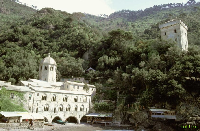 Если обратится к пищи духовной — для этого следует отправится в аббатство Сан Фруттуозо. Попасть туда можно только со стороны моря, так как аббатство приютилось в одной из бухт, а со стороны суши укрыто горой. Аббатство Сан Фруттозо возникло в укромной бухте примерно в IX-X веках, и хотя его происхождение до сих пор окружено мифами и легендами, историки полагают, что основал его епископ Таррагоны — Проспирио. Его корабль, спасаясь от арабских пиратов, потерпел в этих местах кораблекрушение. Укрыться от морских разбойников Проспирио удалось в морской бухте, а поскольку епископ вез с собой мощи великомученика Фруттозо, то для сохранения этой бесценной реликвии епископ сначала возвел церквушку, а затем основал аббатство. Культ святого вскоре распространился по всей Лигурии и достиг таких масштабов, что великомученик был признан покровителем лигурийских моряков.