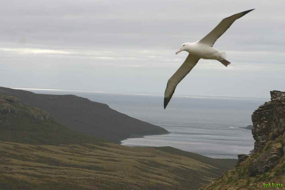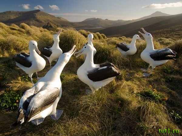 Альбатросы славятся своими длительными перелетами. Когда молодые птицы учатся летать — они взлетают учитывая силу ветров, это искусство не так легко освоить. После того, как птицы приобретут необходимые навыки, они смогут пролететь без отдыха 5 тысяч километров, при этом им почти не нужно махать крыльями. Королевский альбатрос — крупнейший из всех альбатросов, размах его крыльев достигает трех с половиной метров. Несмотря на большие размеры, их обтекаемые тела легко "разрезают" воздух. Крупные плоские лапы помогают им при заходе на посадку и в управлении полетом. На острове Кэмпбелл обитает несколько видов альбатросов. Для них этот остров и дом, и лётная школа. Средняя продолжительность жизни альбатроса около 50-ти лет. Они достигают половой зрелости примерно в 10 лет, а до этого в течении 4-7 лет альбатросы могут исследовать океан. Каждый год в ноябре у альбатросов начинается брачный период. Образовав пару, эти моногамные птицы, остаются вместе до самой смерти. Каждые 2 года самка откладывает яйца. В течении 60-ти дней родители борются с суровым климатом и сильным голодом, по очереди высиживая яйца.