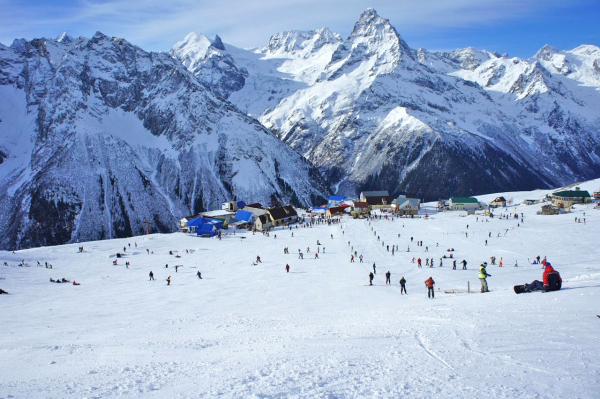Это известный и часто посещаемый многими лыжниками и сноубордистами курорт. Расположен Домбай или Домбайская поляна в Карачаево-Черкесии. Привлекает этот горнолыжный курорт отдыхающих со всей России, поскольку здесь можно полюбоваться открывающимися с вершины видами гор, лесов и ущелий. Домбай продолжает активно развиваться, тут часто проходят не только российские, но и международные соревнования.