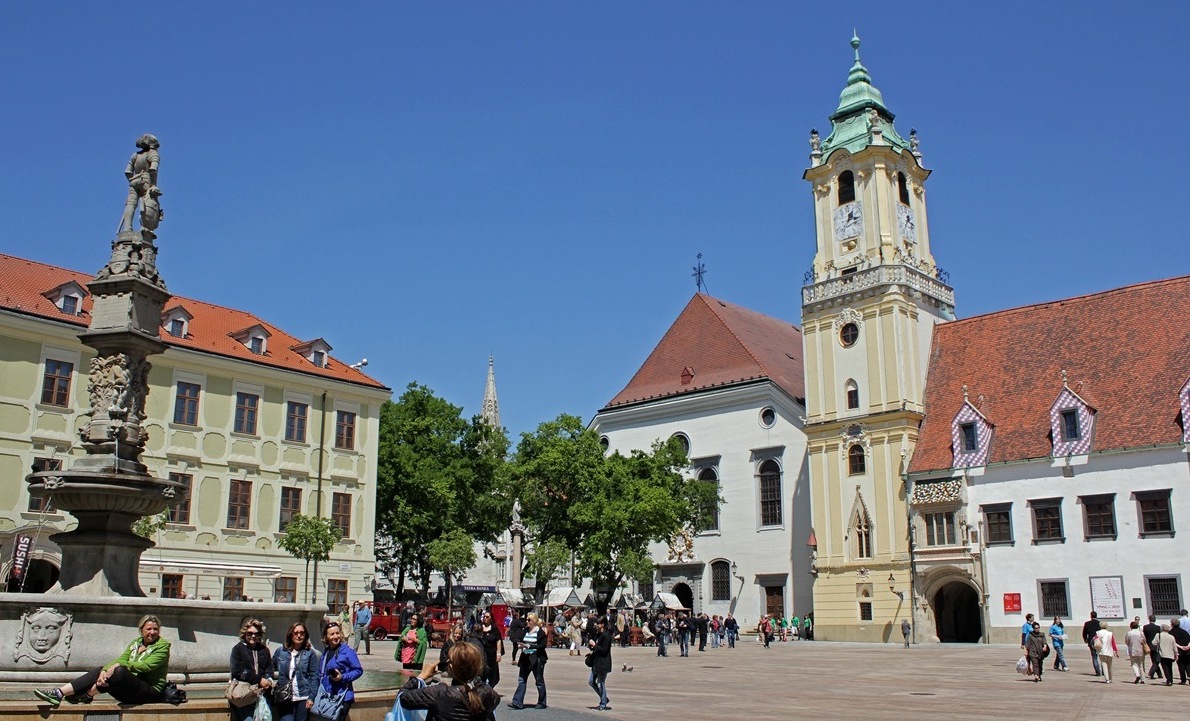 - Желающим поскорее познакомится с исторически важными местами, достопримечательностями столицы Словакии, стоит сразу же поспешить в Старый город. Именно здесь сосредоточено все самое интересное, "сердцем" считается Главная площадь. Поблизости расположена Старая ратуша, которая была возведена еще в 15 веке. После этого строение подвергалось разрушениям во время разных исторических действий, но было реконструировано. За это время Ратуша вобрала в себя множество архитектурных стилей (барокко, готика, ренессанс).