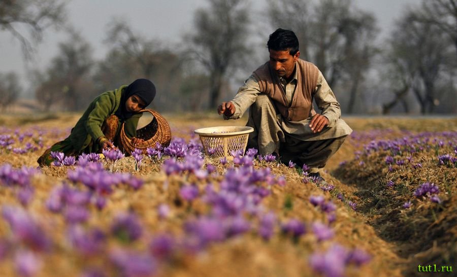 На плато около Пампура раз в году, в октябре, собирают цветы шафрана. Натуральный экстракт этого растения почти такой же ценный, как и золото. После ручной сортировки, стигмы цветов тщательно отделяются друг от друга и очищаются от всех примесей. Для получения 500 гр. шафрана требуются красные и золотистые стигмы 75 тысяч цветов, что делает шафран самым дорогим из всех специй в мире. Порошок этих цветов так же используется как фармацевтический продукт, как краситель для тканей, или просто для нанесения отметок на лбу.