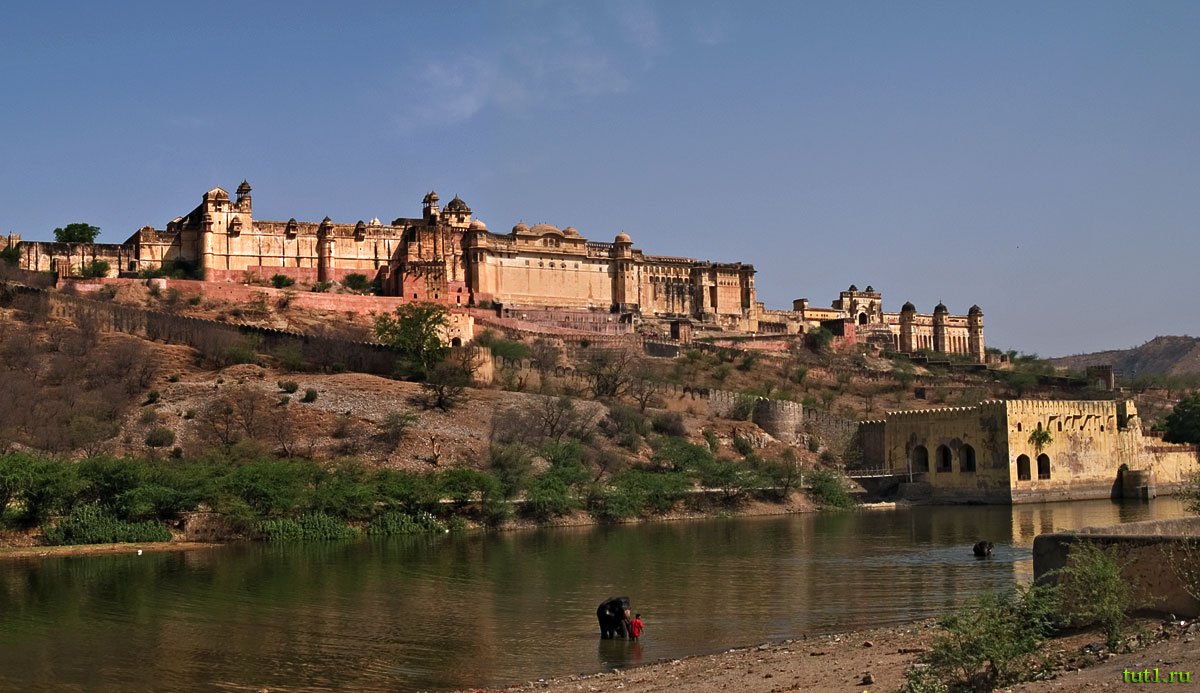 Янтарная крепость, более известная как крепость-дворец Амбер, из которой Джай Сингх II перебрался в построенный им Джайпур, расположена немного севернее. Крепость была возведена на скалистом выступе, над гладью озера Маота. В течении семи столетий здесь находилась древняя столица Дундарского княжества. Выгодное расположение столицы — на пути из Дели в восточный Раджастан, стало результатом дальновидного союза с династией великих Моголов. Махараджа Джай Сингх II возвел янтарную крепость для защиты от набегов кочевых племен. Это внушительное сооружение позволяет представить себе степень могущества и богатства здешних правителей. По традиции, как и много столетий назад, посетители добираются до крепости на слонах.