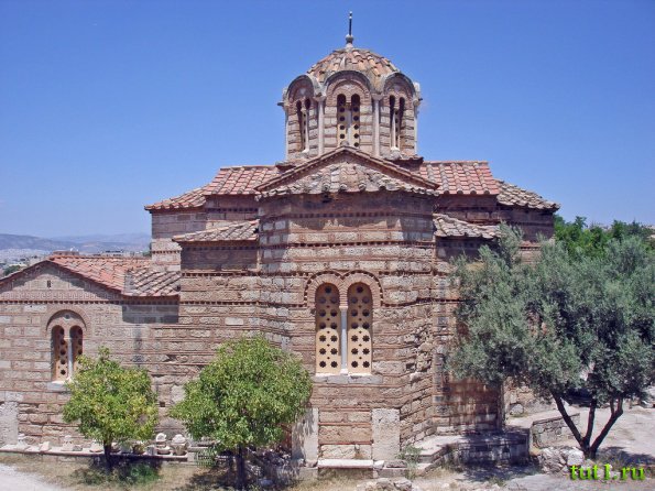 Церковь Святых Апостолов в Афинах, находящаяся в юго-восточной части Агоры, — это единственное строение, которое было сохранено (в отличии от многих зданий) в период проведения глобальных археологических раскопок. Церковь была построена в XI веке и неоднократно подвергалась реконструкции. Но, реставрационные работы, которые проводились в 1950-х годах, устранили следы позднейших вмешательств в архитектуру здания, и в настоящее время церковь Святых Апостолов предстает перед посетителями в своем первоначальном виде.
