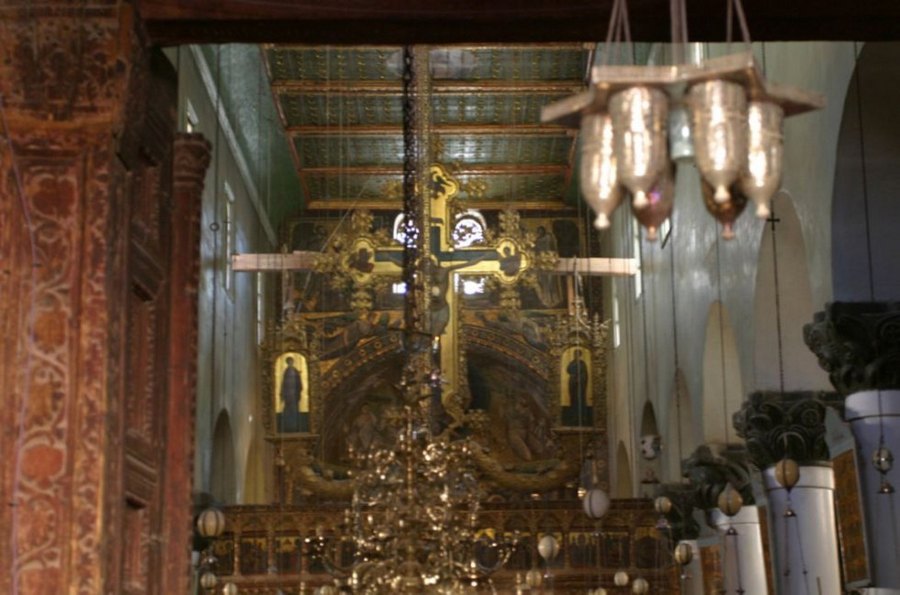 Центральной точкой монастыря Святой Екатерины выступает трехнефная базилика Преображения. Богатое убранство представлено сюжетами древних росписей, резными перилами и оградами, иконостасом и светильниками. Преображение Господне передает мозаика, изготовленная еще в VI веке. Вдоль здания проходят 12 колонн. Верх каждого гранитного столба украшает византийская икона с ликом святых. Святые мощи упрятаны в нишах. Дверная конструкция представлена полотном из ливанского кедра.