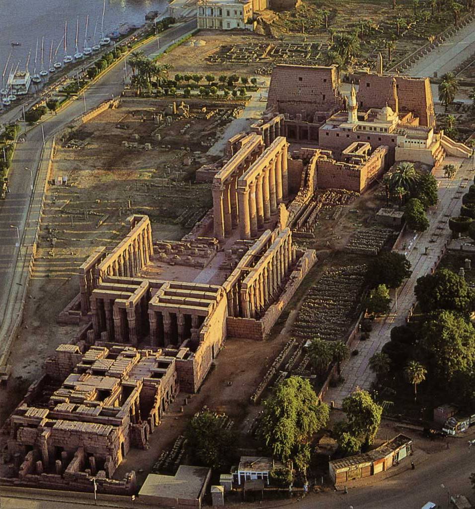 Туристическую поездку в Египет нельзя считать завершенной без посещения одного из интереснейших культовых сооружений — храма в Луксоре. Луксор — небольшой туристический город, поделенный на две части руслом Нила. Храм находится на левом берегу, в центре «Города живых». На противоположной стороне реки — «Город мертвых», в котором расположена Долина фараонов: скальные усыпальницы царей и храмовый погребальный комплекс Рамсеса III Мединет-Абу. В двух километрах южнее Луксорского находится гигантский Карнакский храм, соединенный с Луксорским Аллеей сфинксов (в древности называлась «Священный путь»). Протяженность Луксорского комплекса — 260 метров вдоль Нила. Пилоны (трапециевидные башни у входа в храм) — 70 метров длиной, 20 высотой.