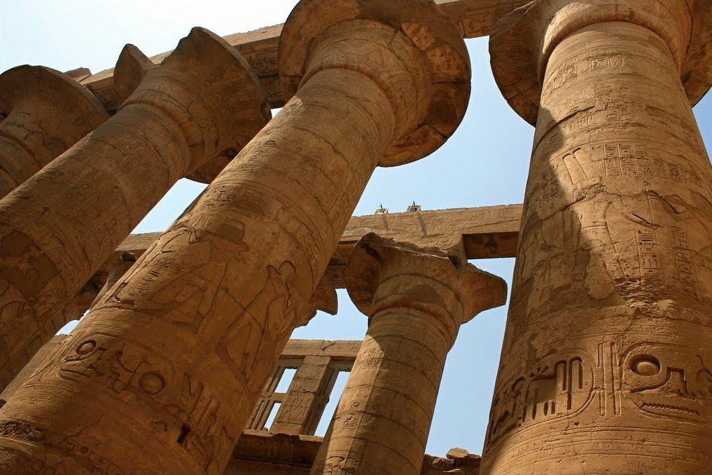 Двор Аменхотепа III — девятнадцатиметровые колонны с изображениями празднеств в честь Амона.