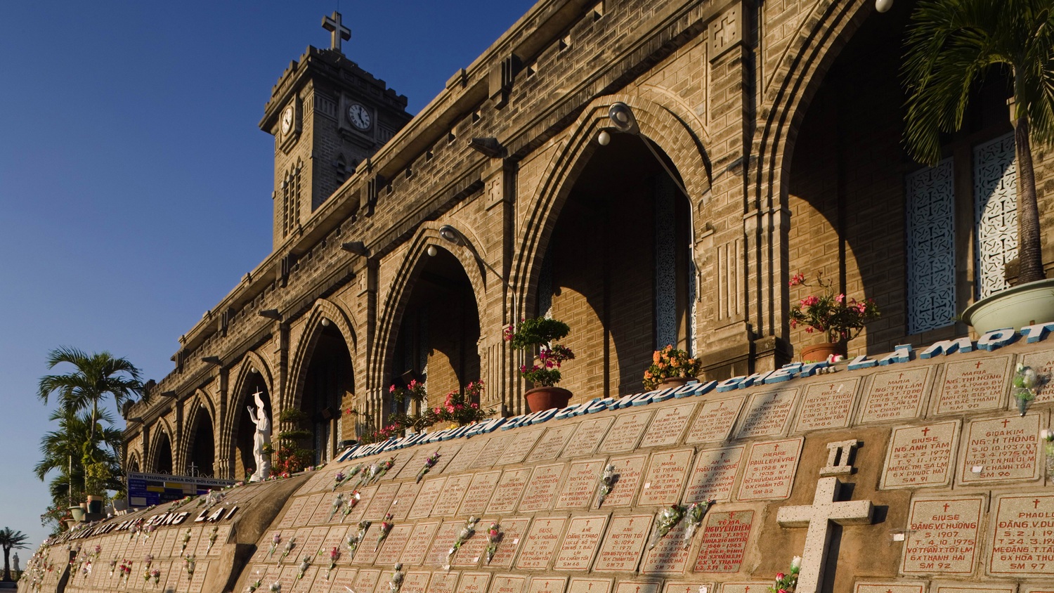 Интересное здание Кафедрального собора Нячанга привлекает взгляды даже самых искушённых туристов. Возведённое в готическом стиле из каменных блоков строение стоит на вершине холма, поэтому его видно издалека. Храм носит имя Святой Марии и является резиденцией епископа. Его официальное имя – кафедральный собор Кито, а местные называют его «церковью на горе», «кольцевым» и «каменным» собором. На юге Вьетнама издавна распространено католичество, поэтому церковь является излюбленным местом почитателей этой религии. Это самый большой храм Нячанга и главная католическая епархия Вьетнама с 1960 года.