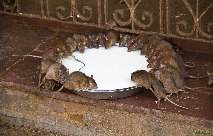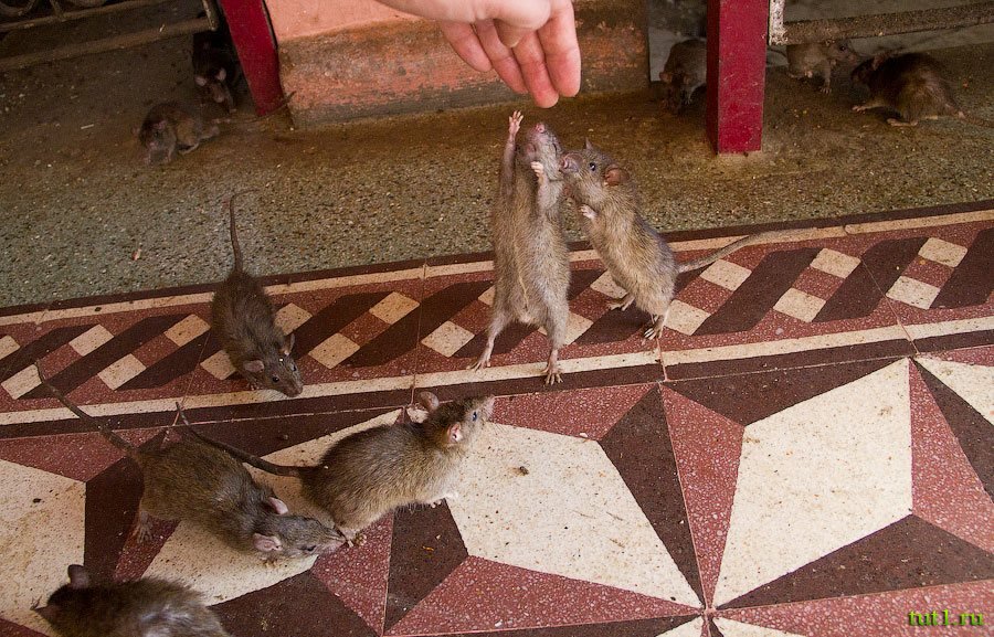 Храм, посвященный богине Карни Мата ― уникальный храм Индии. В этом храме обитают 20 000 священных крыс. В этих местах когда-то жила богиня Карни Мата. В XV веке ужасная лихорадка истребила всех детей. Родители обратились к Карни Мата с просьбой оживить ребятишек. Богиня согласилась, но условия сделки оказались очень жестокими ― дети перевоплотятся в грызунов. "Ну, не в тараканов же, в конце концов" ― подумали родители и согласились.