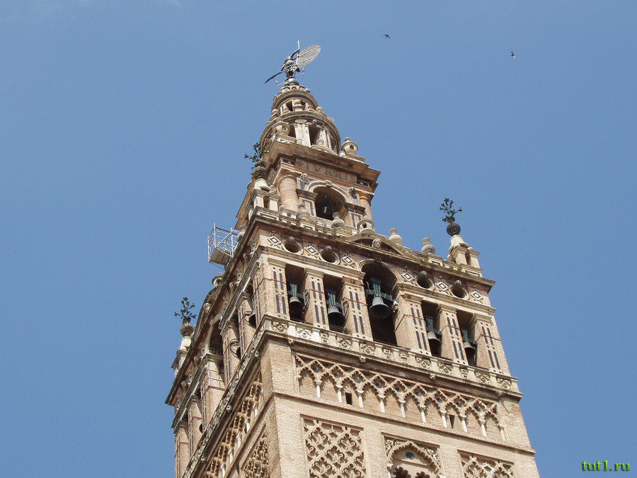 На территории собора располагается Хиральда ― одно из прекраснейших зданий Севильи. Колокольня, достигающая в высоту 114 метров, вмещает в себе 22 колокола. Больше всего потрясает конструкция внутренней башни ― она состоит из 35-ти пандусов, слегка наклоненных и достаточно широких чтобы по ним могли проехать два стражника на конях. Гармония первоначальной постройки была, в некоторой степени, нарушена пристройкой огромных балконов в стиле ренессанса и четырьмя реставрациями колокольни, пострадавшей от землетрясения в середине XVI века.