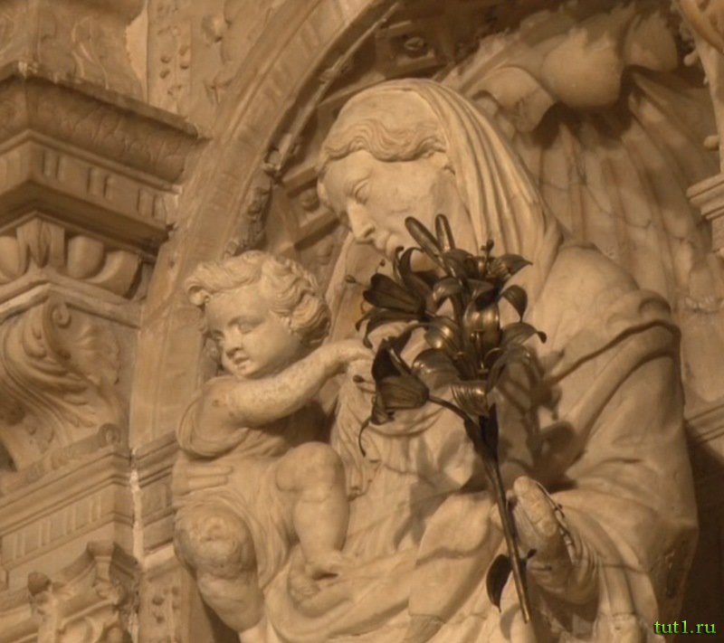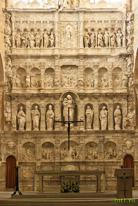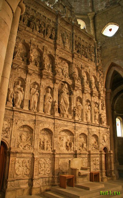 В церкви при монастыре Поблет особого внимания заслуживает великолепная резная стена из алебастра.