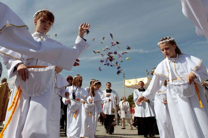 Праздник Тела Христова — очень древний праздник, которые отмечается ежегодно в четверг после Троицы. В далёком 1263-м году чешский священник Пьетро вдруг испытал серьёзнейшие сомнения: "А верно ли, что Христос оставил своё тело и кровь верующим?" Став пилигримом, он отправился из Праги сначала в Рим, а затем в Умбрию. В одном городке он решил отслужить мессу у могилы святой Кристины. И когда он разломил просвирку (маленький круглый хлебец) — из неё брызнула кровь на его костюм. Это одеяние, пропитанное кровью, он отнес папе римскому. Тот ему поверил и в 1264-м году учредил праздник Тела Христова. А главным городом для его проведения был назначен город Орвието.