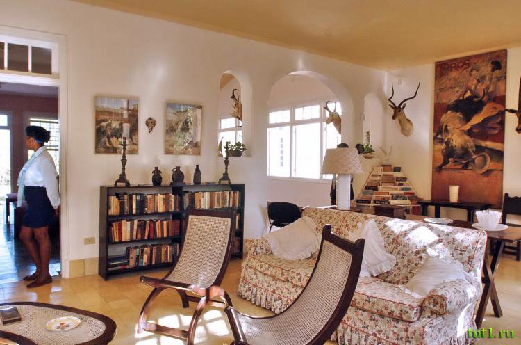 На книжных полках расположены разные экспонаты, среди которых подарки от друзей и поклонников. Когда писатель уезжал — он оставил много личных вещей и большую библиотеку с шестью тысячами книг. Он знал, что никогда уже не вернется сюда. В своём доме в штате Айдахо, он застрелился. Его смерть до сих пор вызывает множество предположений и вопросов, окутанных разными тайнами. Кто-то думает, что причиной всему была неизлечимая болезнь, или кризис личной жизни, кто-то считает, что писатель не пожелал старости.