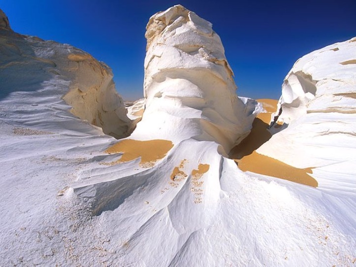 Египет одно из самых экономичных и распространенных мест отдыха для жителей нашей страны. Кажется, что он уже изучен вдоль и поперек. Но не тут-то было! Здесь есть места, которые практически не видели человека. А их внеземные виды поражают воображение до глубины души. Как Вы могли догадаться, за такими прекрасными пейзажами нужно ехать за сотни километров от ближайших городов. Своими невероятными красотами отличается Белая пустыня в Египте. Из названия можно догадаться, что пески тут белоснежные, с примесью меловой и карстовой породы.