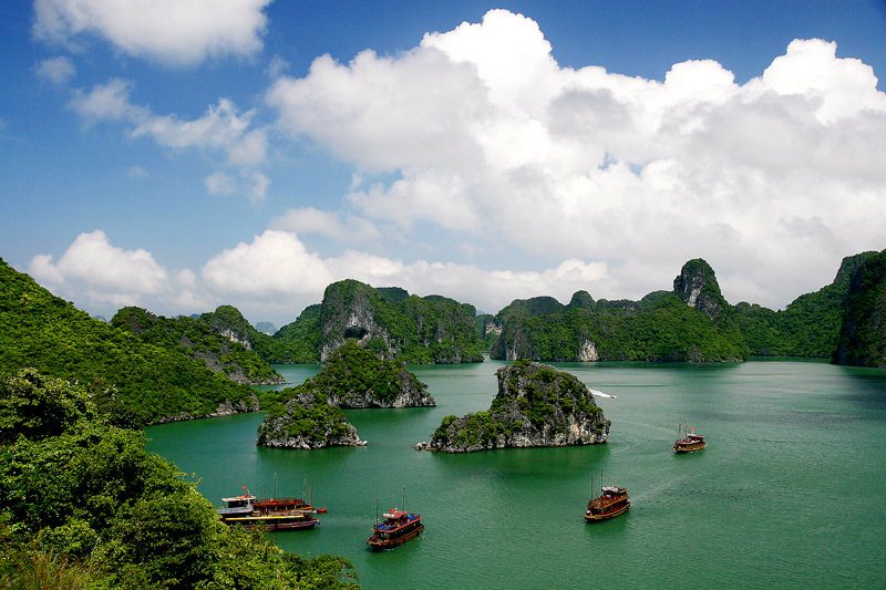 Бухта Халонг находится в Тонкинском заливе, относящемся к Южно-Китайскому морю. Найти бухту можно на севере Вьетнама, в 170 километрах от его столицы — города Ханой. Попасть в райское местечко можно из Ханоя или Наньинга (это китайский город). Туристам, отдыхающим на юге в Хошимине, до архипелага лучше добираться самолетом, воспользовавшись перелетом до Хайфона. Ехать в Халонг из Ханоя удобнее автобусом. Купить на него билет можно в туристических компаниях или просто на улице. Стоимость проездного невелика — 10 – 12 долларов (цена устанавливается исходя из класса транспортного средства и особенностей маршрута).