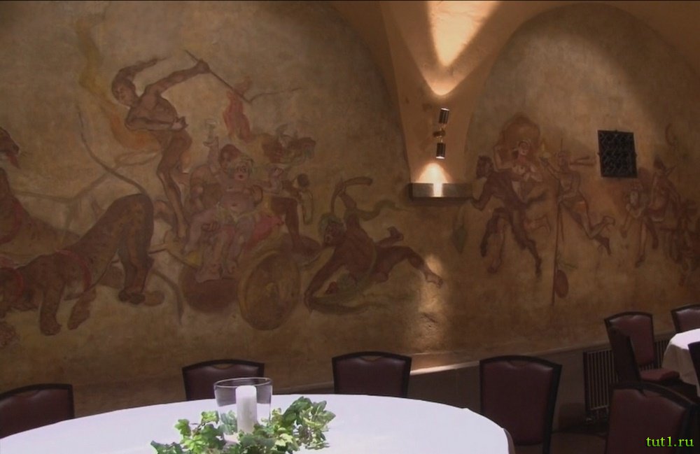 Этот подвал-ресторан связан с именем известного немецкого писателя Вильгельма Гауфа. Он влюбился безответной любовью и чтобы снять боль сердечной муки использовал известный способ, свойственный многим. Вильгельм подался сюда и хозяин заведения разрешил ему остаться в погребе до утра, чтобы он утолил свою сердечную боль. После чего этот зал и стал носить имя этого влюбчивого писателя. А на стенах появилась роспись по его сказкам.