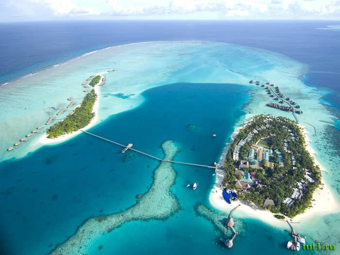 Сверху Мальдивские острова напоминают горсть опалов, рассыпанных в океанской лазури, это божественное произведение искусства, а, может быть, и дьявольское, потому что уж очень соблазнительны они. Расположенные в Индийском океане в 700 км к юго-западу от Шри-Ланки, 26 атоллов, состоящих из кораллов, разросшихся вокруг потухших вулканов — это Мальдивская республика. Каждый из 26-ти атоллов обладает природными богатствами — белоснежными пляжами, прозрачной бирюзовой водой и пышной тропической растительностью. Всего здесь около 2-х тысяч островов, но лишь 200 из них обитаемы и 87 принимают туристов. Так что отели здесь на любой вкус.